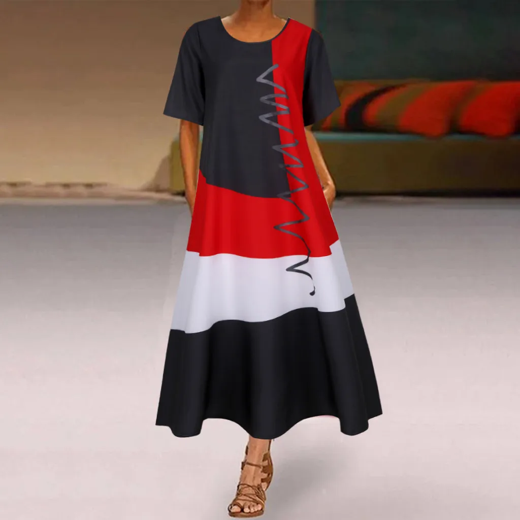 Apropiado artículo y envío fugaz. vendedor recomendado para Vestido largo informal de talla grande para mujer, Vestidos de manga corta con cuello redondo para mujer # T2Q